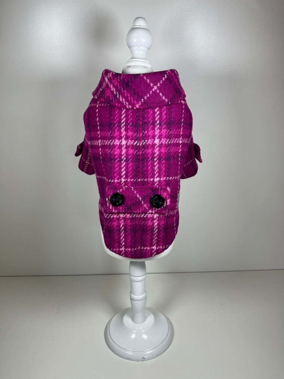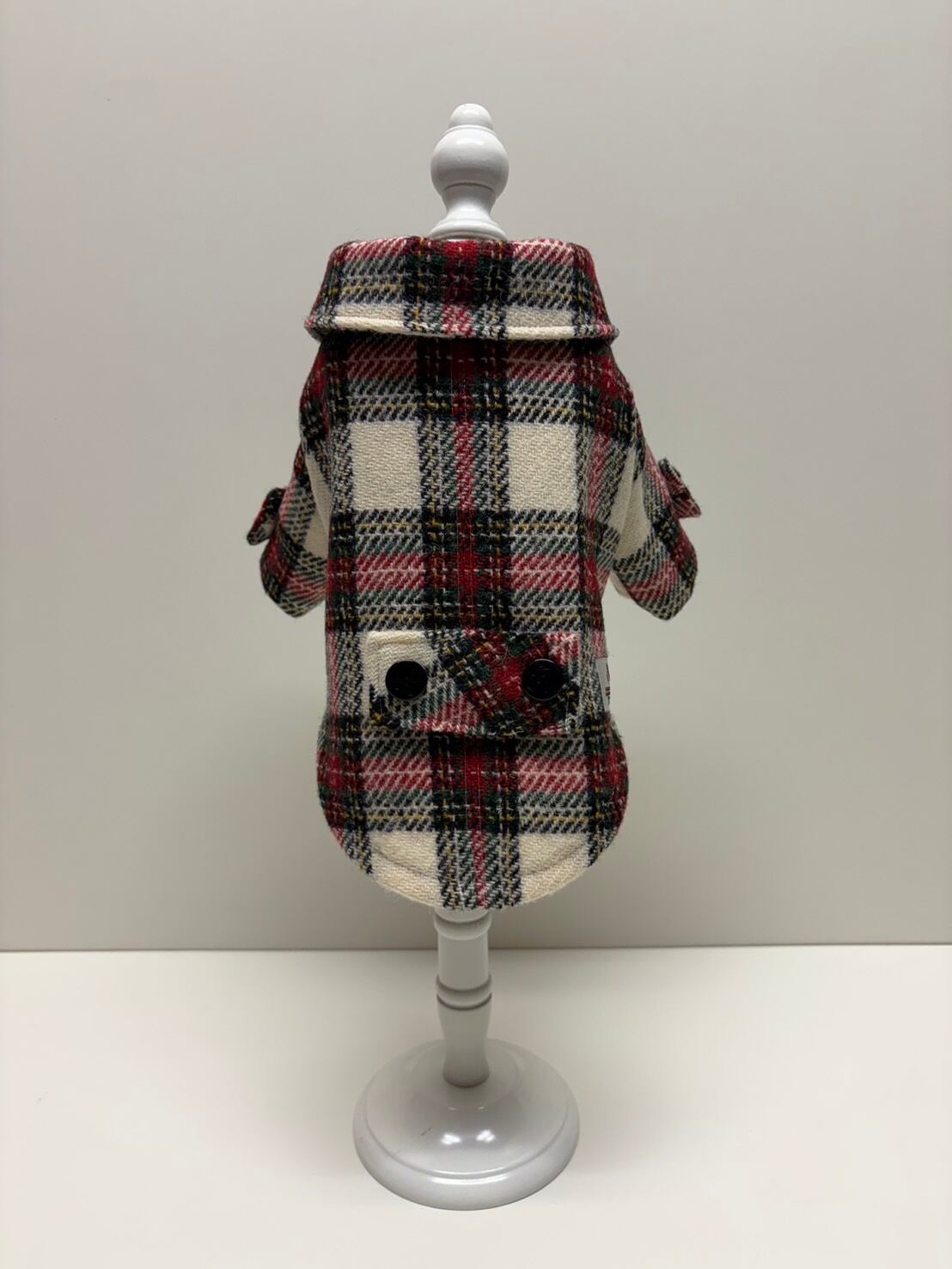 英国伝統のハリスツイードを使用した、小型犬専用のPコートです。秋冬のお散歩にぴったりで、暖かさとスタイルを両立させています。フード付きで、寒い日も愛犬をしっかり守ります。婦人服を手掛けているアーティストが一つ一つ丁寧に作り上げております。
